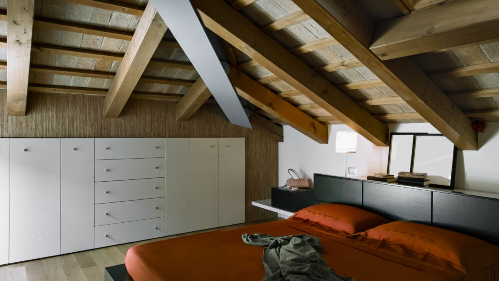 Najczęściej spotykanym sposobem zagospodarowania poddasza jest sypialnia. Adaptacja takiego pomieszczenia nie jest trudna nawet wtedy, gdy jest ono dość niskie. Tego rodzaju wnętrze wymaga użycia kompaktowych mebli i odpowiedniej wielkości akcesoriów. Pod skosami można bez problemów umieścić łóżko oraz niższe szafki czy komody. Wysoką ścianę można wykorzystać do ustawienia szaf lub powieszenia telewizora.